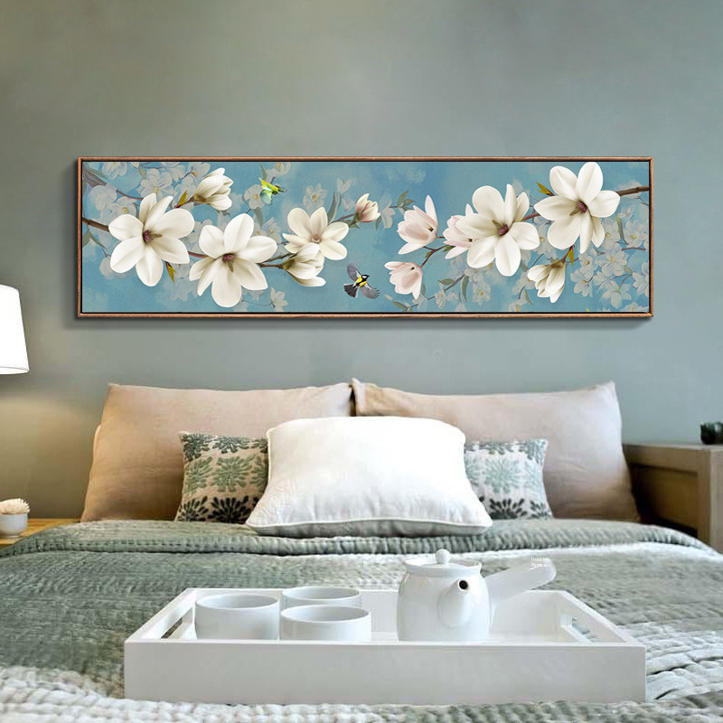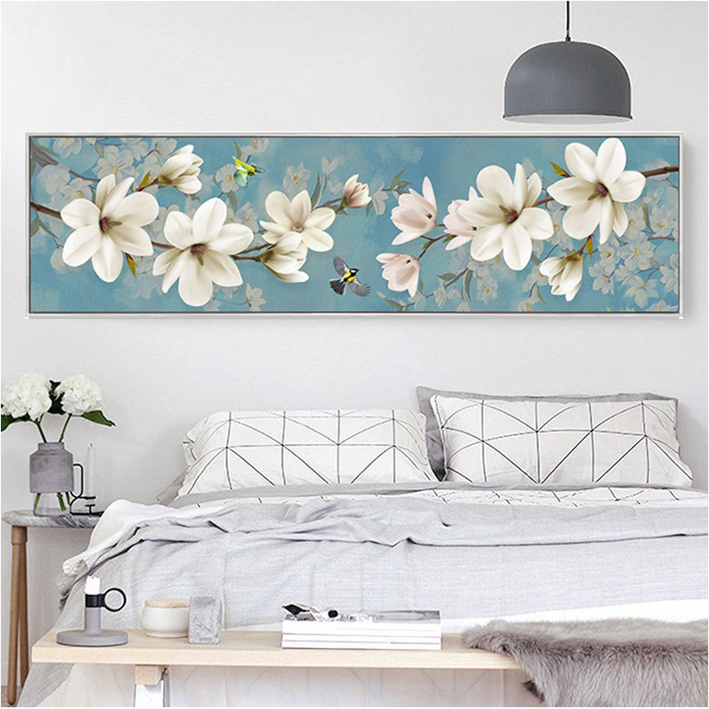 Bedside painting magnolia flower full embroidery thread embroidery cross stitch simple modern 2021 new living room bedroom small simple