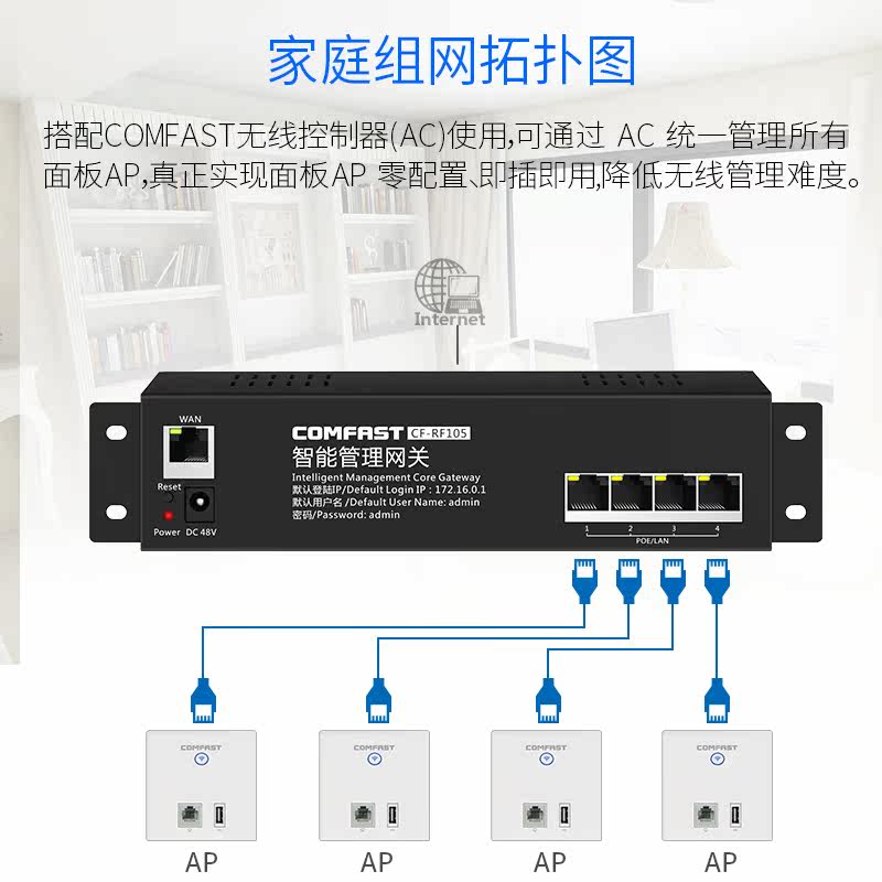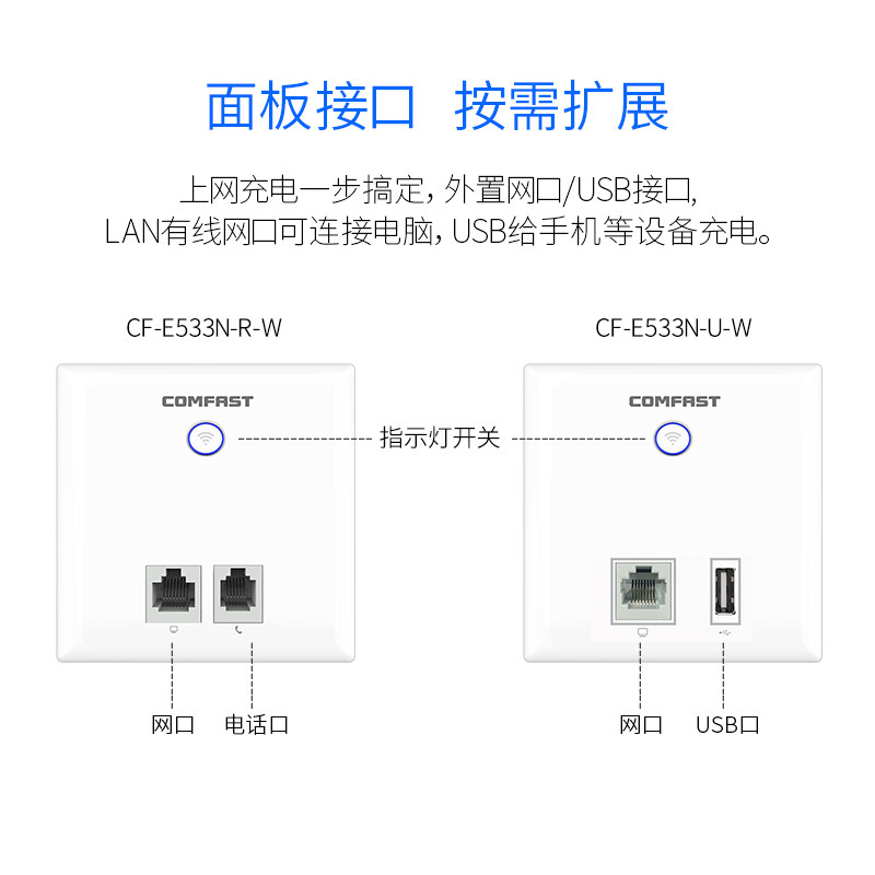 COMFAST In-wall 86 panel single frequency wifi wireless AP with USB telephone port poe48V power supply E533N
