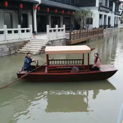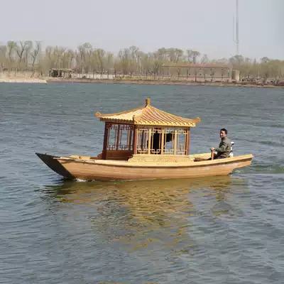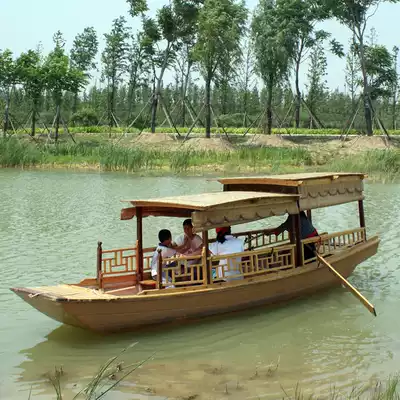 Chinese handmade antique tourist sightseeing boat Water leisure entertainment catering Wooden boat Landscape decoration Wu tent boat