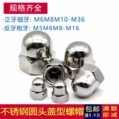 304 stainless steel round head decorative fine tooth screw cap with cover anti tooth cover ugly ball head nut M5-M36