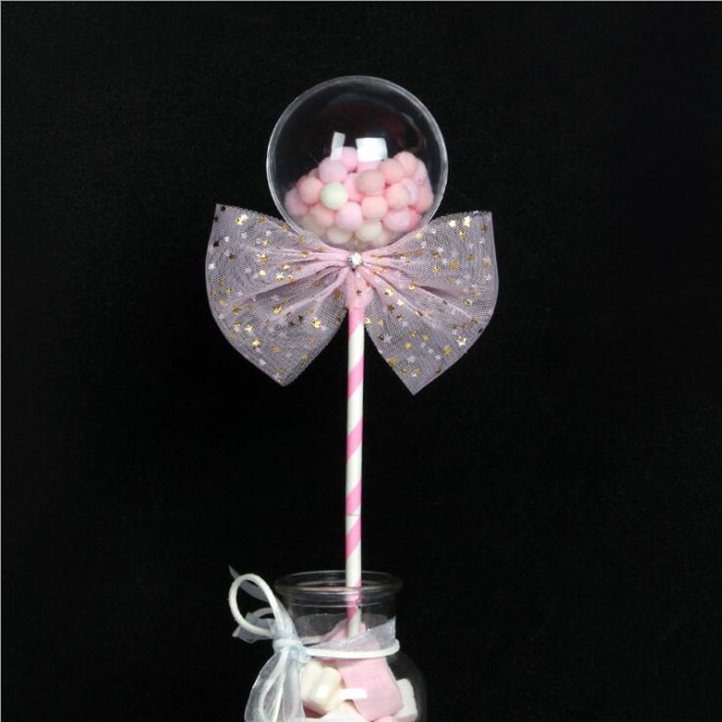 New Cake Decoration Fairy Stick Cute Pink Blue Hairy Ball Crystal Plastic Ball Birthday Dress Plugin