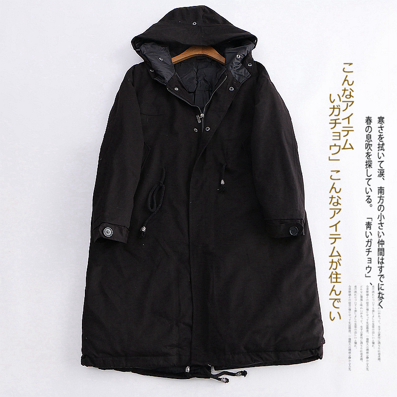 Winter new foreign trade women's Korean version all-match long loose hooded oblique pocket thickened long-sleeved cotton-padded clothes 5242