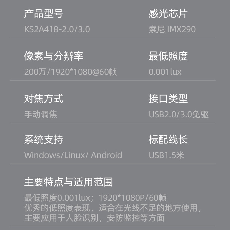 Low-illumination USB3 0 camera industrial-grade IMX290 Raspberry Pi 60 frames 1080P supports OTG driver-free
