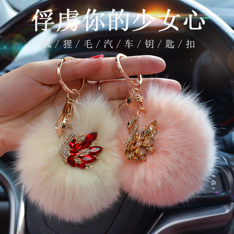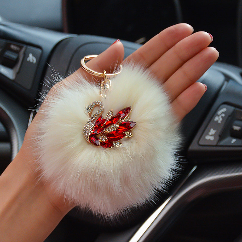 Champagne diamond Pink hairball keychain Purple Swan lotus root Pink fox hair Gray Swan Light gray fox hair Blue Swan Milky white fox hair Red diamond Beige hairball keychain