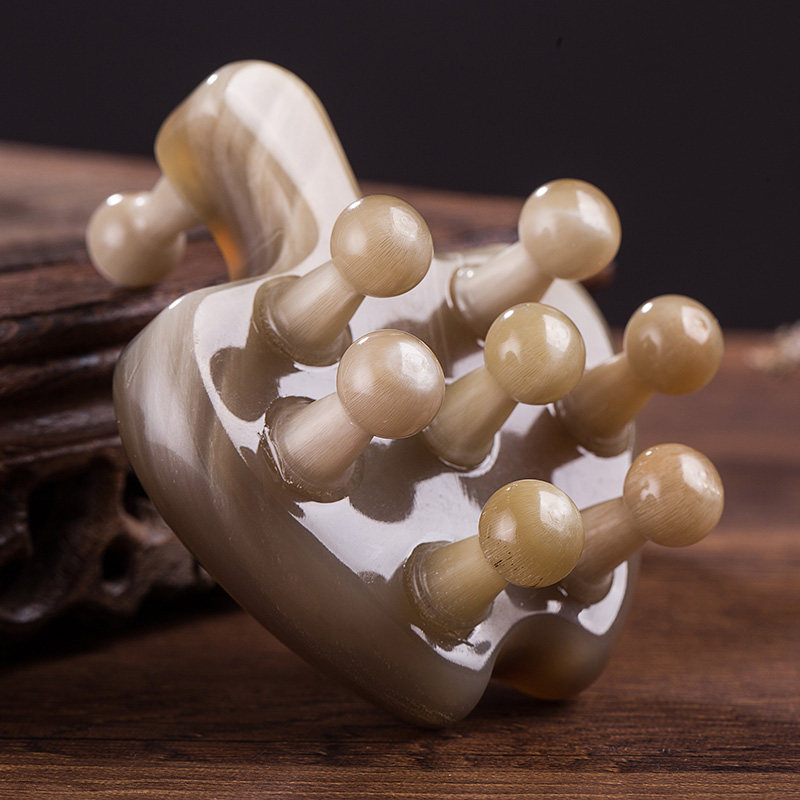 Natural White Buffalo Horn Massage Comb Body Brush Mushroom Comb Baby Massage