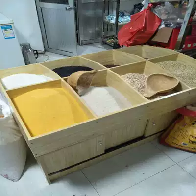 Supermarket dried fruit shelves bulk rice grain container dry container solid wood eight-grid 12-grain grain display cabinet food