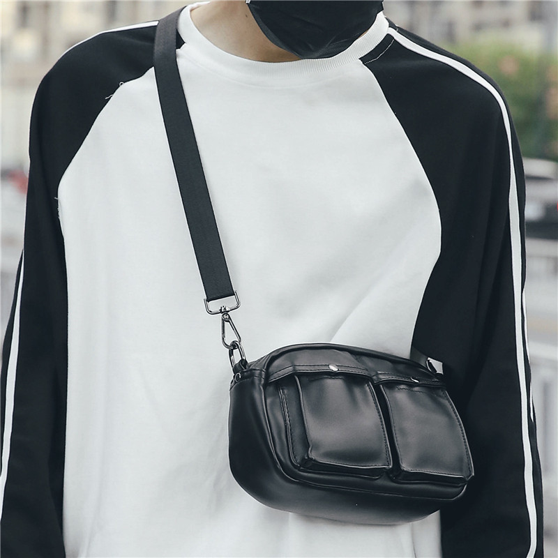 Men's retro fanny pack fashion PU leather chest bag oblique cross bag leisure bag Small crossbody mobile phone Korean version shoulder bag Men's bag