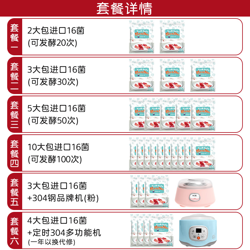 Package 1 2 packs of 16 bags (containing 20 bags) Package 2 3 packs of 16 bags (including 30 bags) Package 3 5 packages of 16 bags (containing 50 packs) Package 4