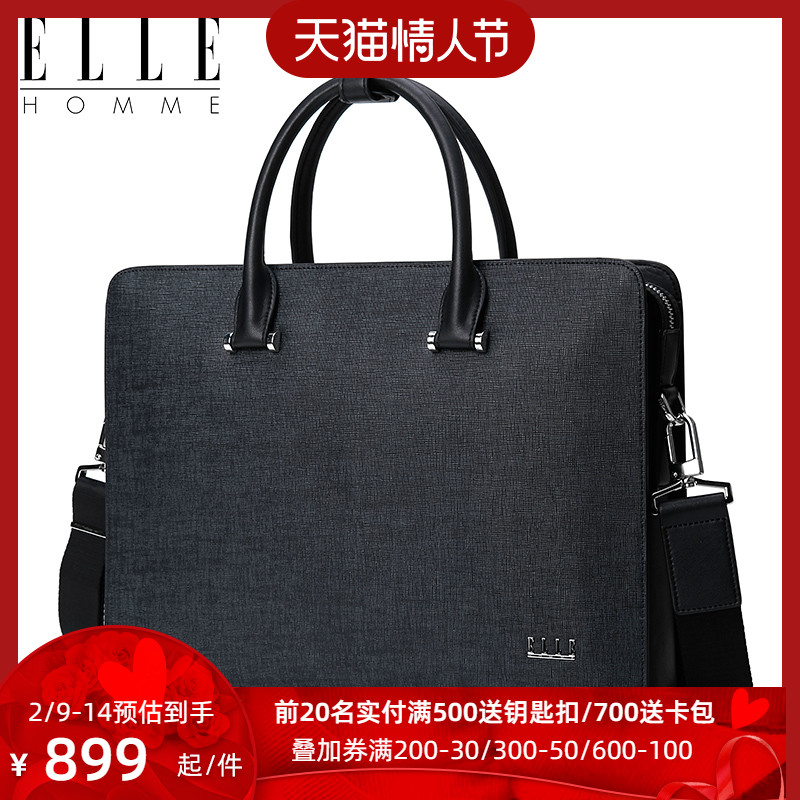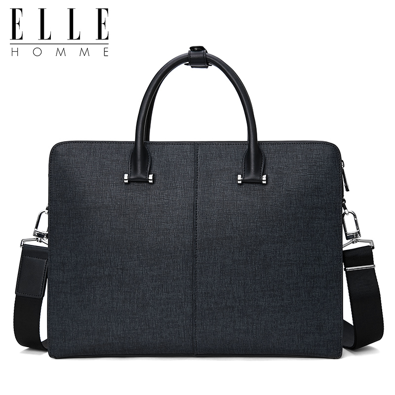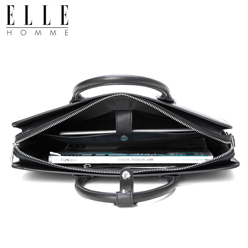 ELLE HOMME Cowhide Men's Bag Hard Leather Horizontal Briefcase Handbag Men's Bag Shoulder Bag Diagonal Cross Bag