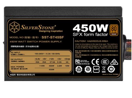 SilverStone SilverStone Rated 450W ST45SF SFX Power Supply 80PLUS Bronze 3 0 Version