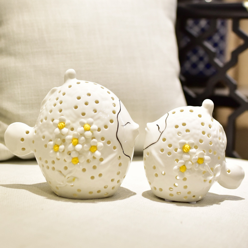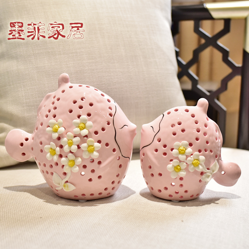 Creative Wedding Gift Pro-Mouth Fish Swing Piece Home Accessories Living Room Dining Cabinet TV Cabinet Wine Cabinet Decorations Ceramics