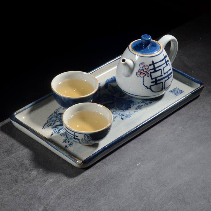 Jingdezhen green porcelain antique ceramic long - shaped dry pot bearing tea tray tea - ceramic tea - ceramic spare parts