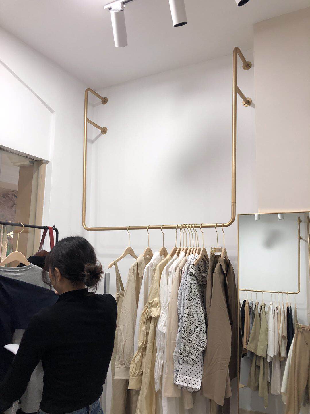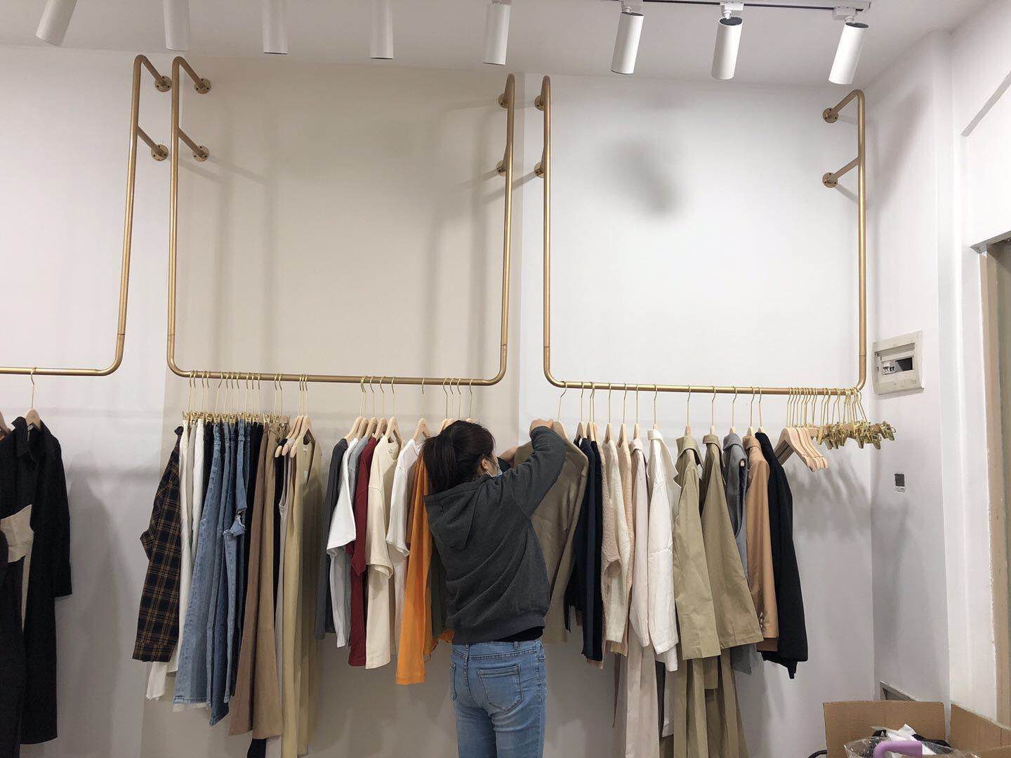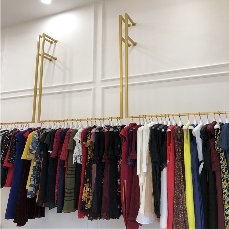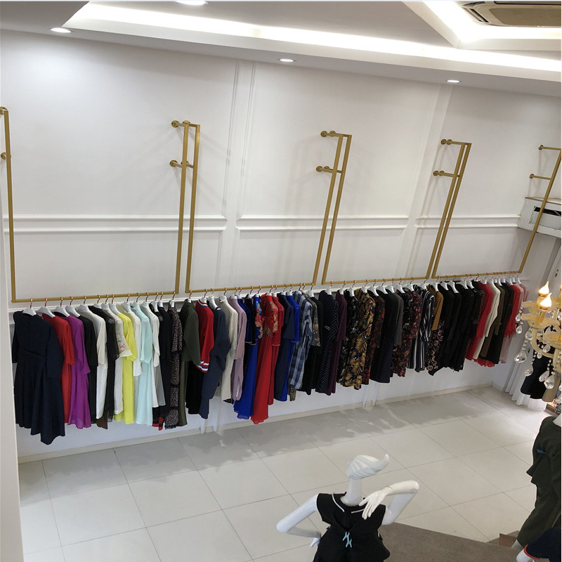 Clothing store display rack on the wall hanging shop decoration gold clothes rack Women's clothing rack Children's clothing side pylons