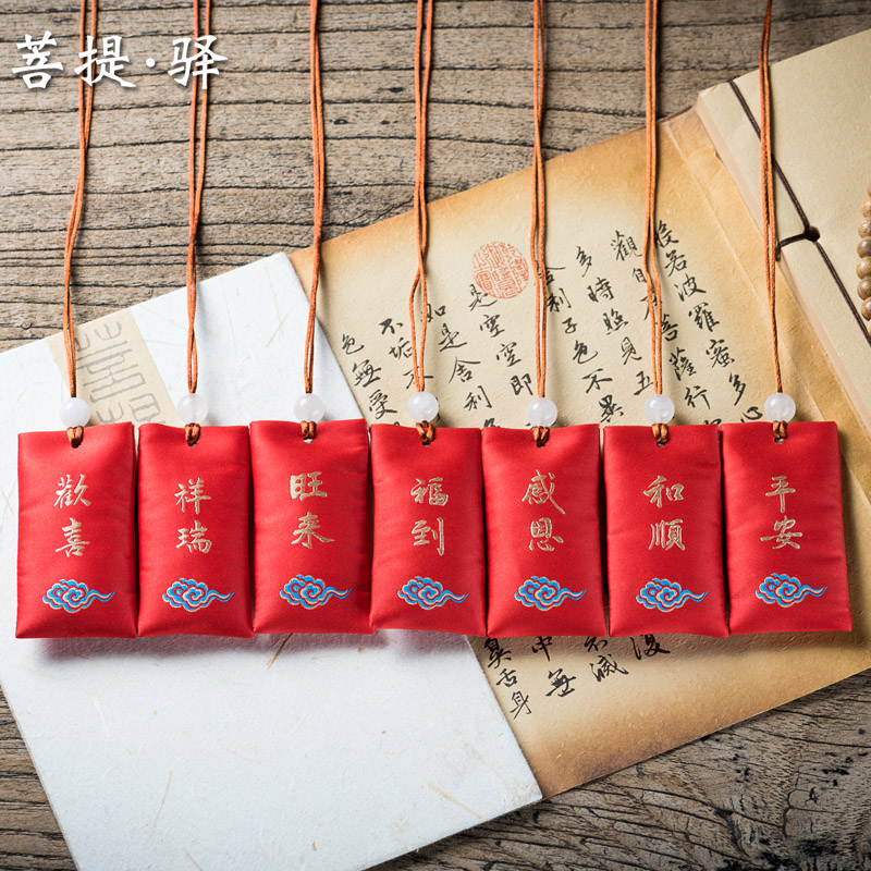 Chinese red pray for fuchal fabric with small and fragrant sacks of green pendant New Year auspicious hanging accessories Fragrant Bags Fubag bag Protective Car Pendant