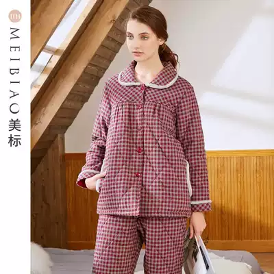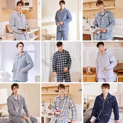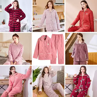 (Special clearance)American Autumn and winter cotton pajama suit Men's and women's three-layer thickened cotton cotton home clothes