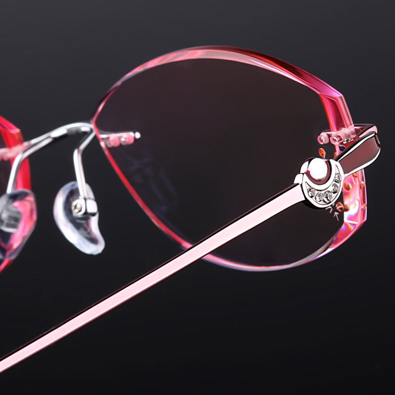 Matching glasses inlaid diamond cut edge nearsightedness glasses frame finished women's frame-no-frame glasses female myopia pure titanium super light