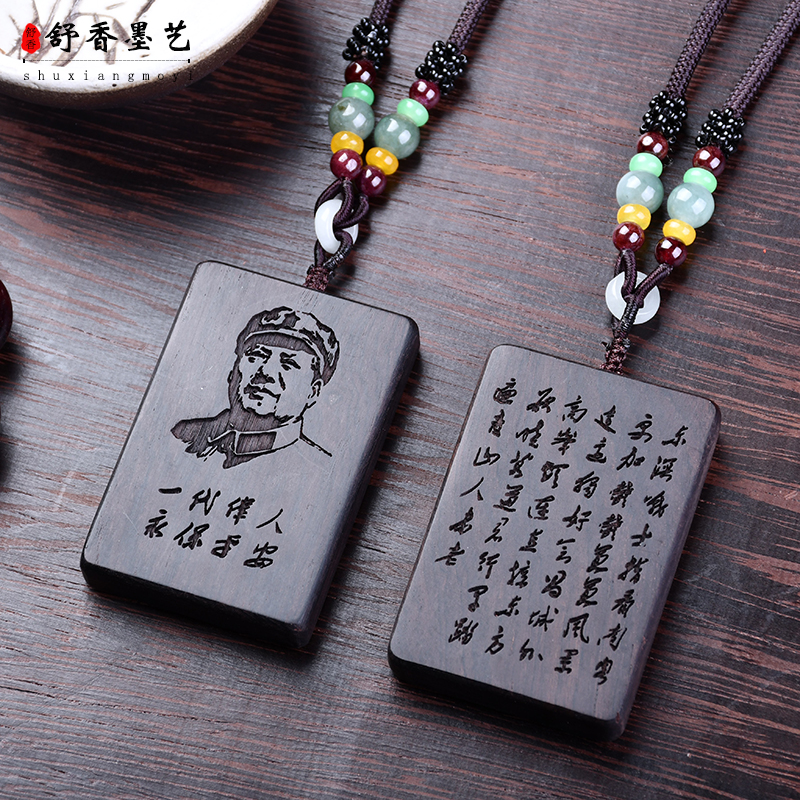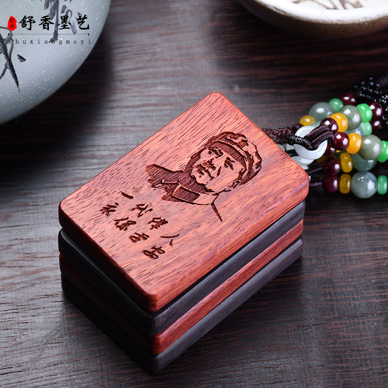 Mahogany carving handicrafts safe card safe Chairman Mao car hanging car pendant can be engraved pendant safe card