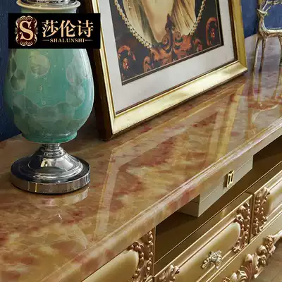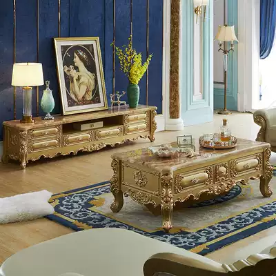 Sharon poem European light luxury TV cabinet coffee table combination living room short cabinet marble floor cabinet champagne gold paint