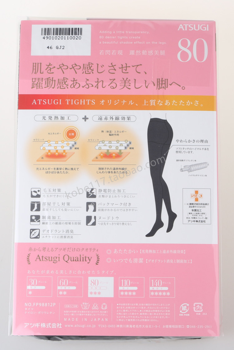 (Clearance) Japan imported ATSUGI Atsugi two pairs of 80D plus file pantyhose light fever fp98812