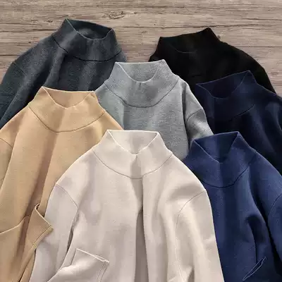 Winter thick knit sweater sweater sweater Europe and America light casual solid color simple men slim slim pullover half turtleneck sweater men