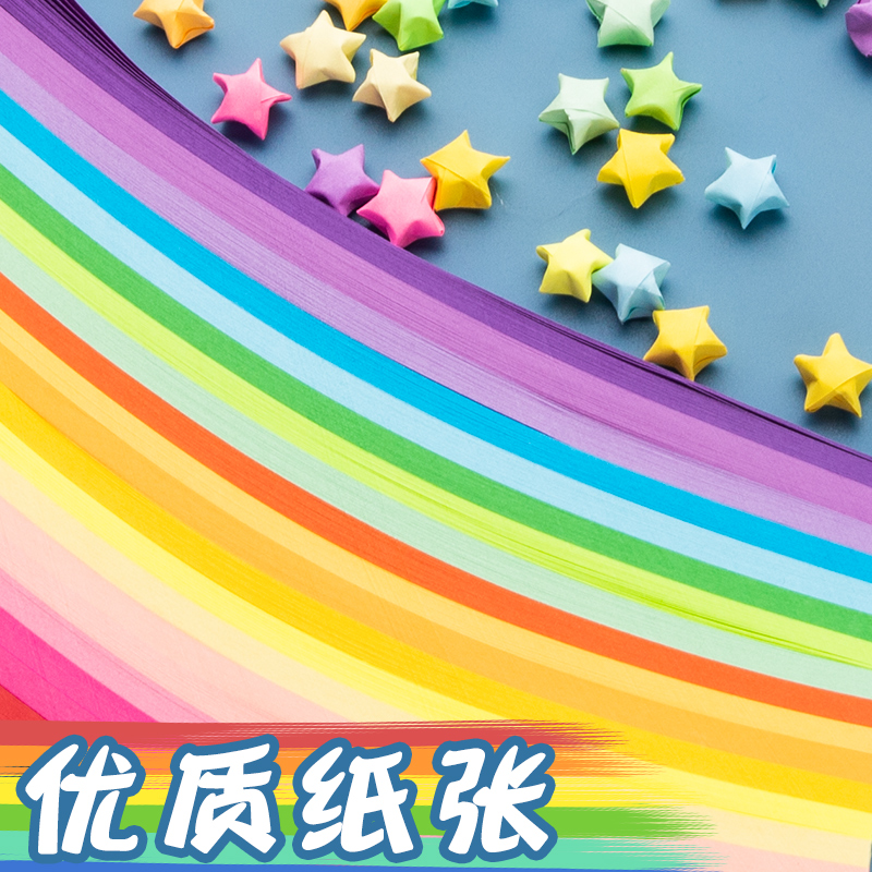 Deli 1000 pieces of color star origami note wish lucky star hand folded star paper candy children kindergarten primary school students five-pointed star folded paper long ribbon bottle gift material wholesale