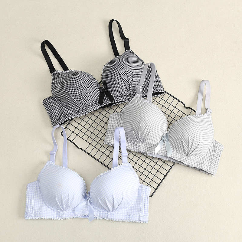 Underwear women without rims small chest gather girly style summer bra high school students cover thin section to receive auxiliary breasts to prevent sagging