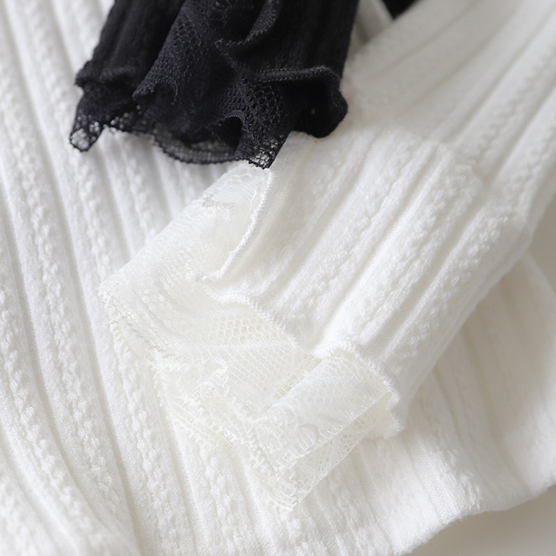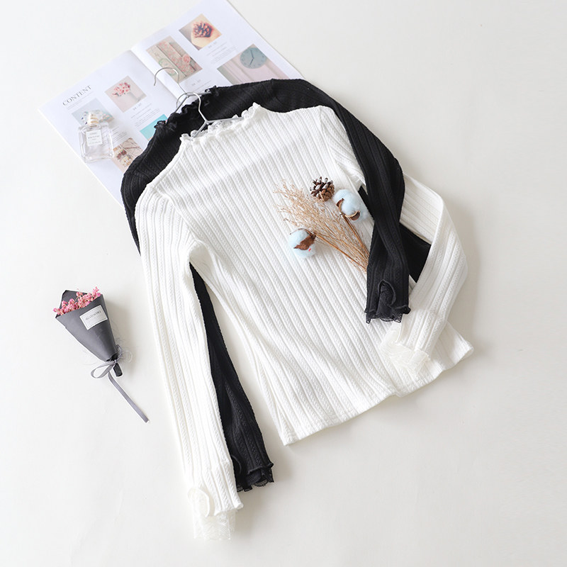 Knitted base shirt women's spring and Autumn lace lace wild large size high collar long sleeve Western style inner tie small shirt high-end top