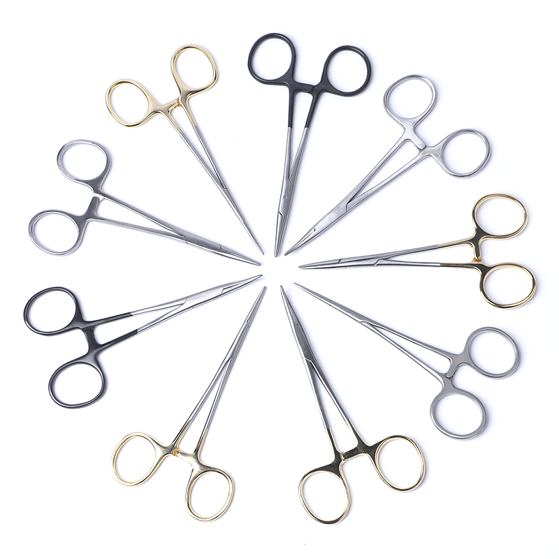 Stainless Steel Tourniquet Surgical Instruments Double Eye-leather Buried Wire Black Straight Elbow Holding Needle Medical Microscopy Tool Small