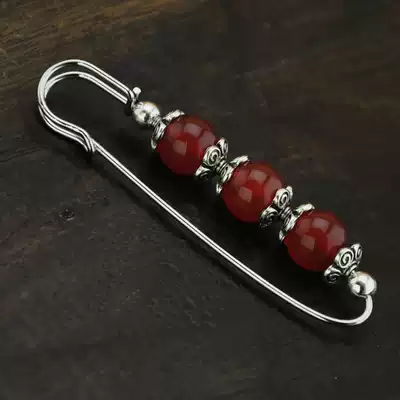 Retro red agate Bodhi Miao silver transfer beads brooch pin sweater scarf open transport evil evil this year gift woman