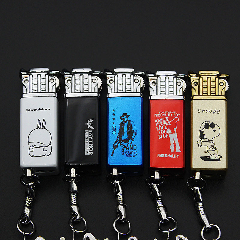 Good durable ultra - mini creative elf inflatable body lighter spare key buckle grinding wheel lighter