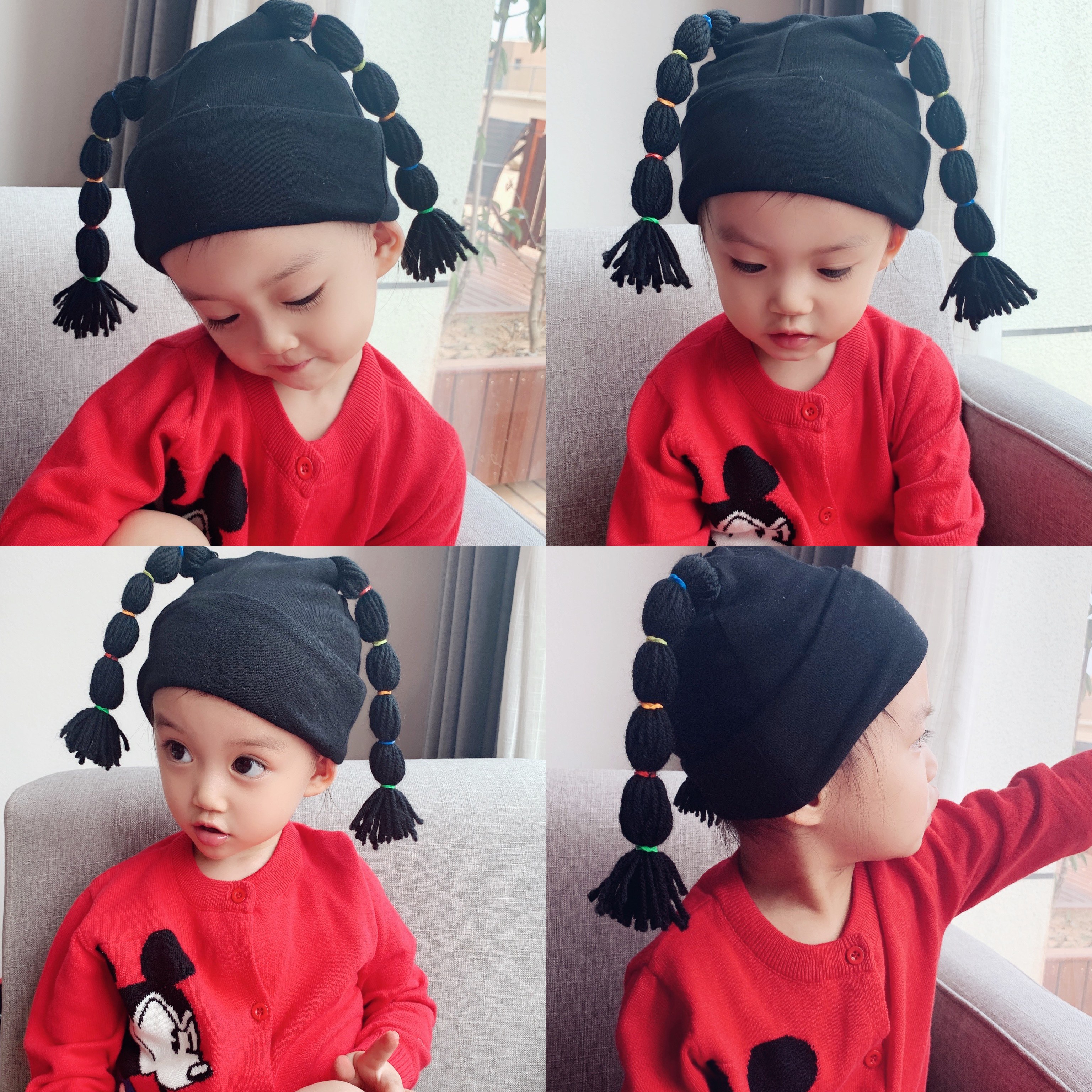 Pure cotton Nezha cap Pure cotton big eyes tail cap Big red bow hat (crooked) Big red bow hat Pink bow braided cap Pink bow braided cap (high)Super beautiful braided cap Kara fu