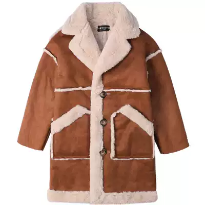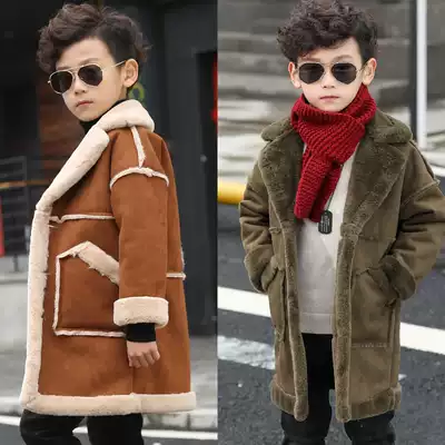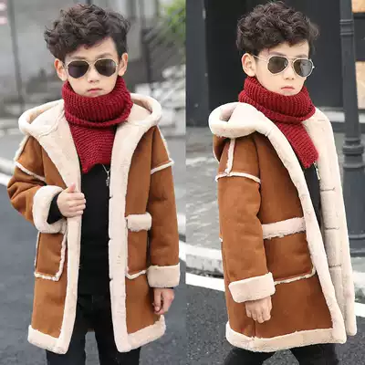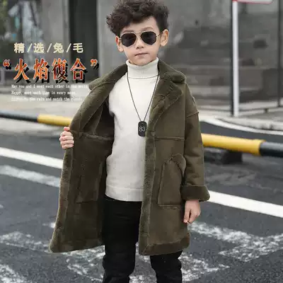 Boy woolen coat medium and long version 2020 Winter new middle and big child fur one coat children Korean version plus Velvet