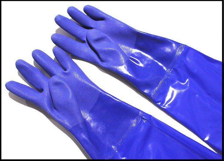 Rubber oil-proof Labor Catching Fish Extended Blue Digging Gloves Long Sleeve Industrial Waterproof Wear Resistance Stretch Ultra-long Acid Resistance