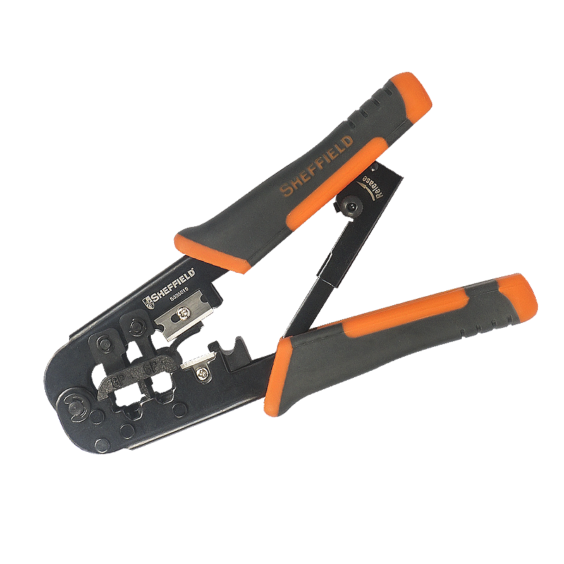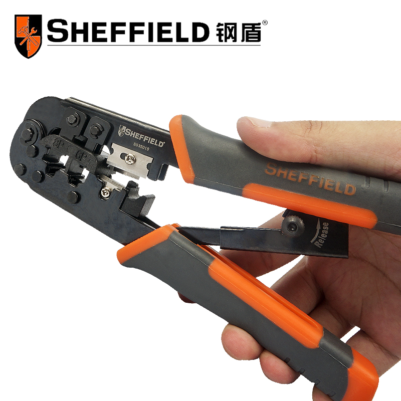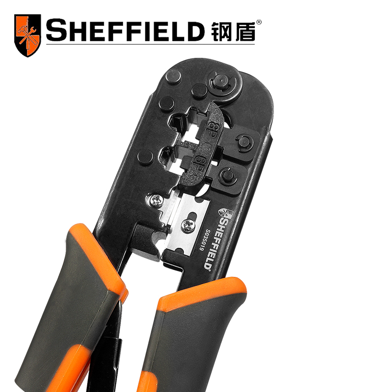 Steel shield crystal head network line crimping pliers wiring crimping pliers multi-function ratchet three-use wire cutting pliers terminal pliers crimping pliers