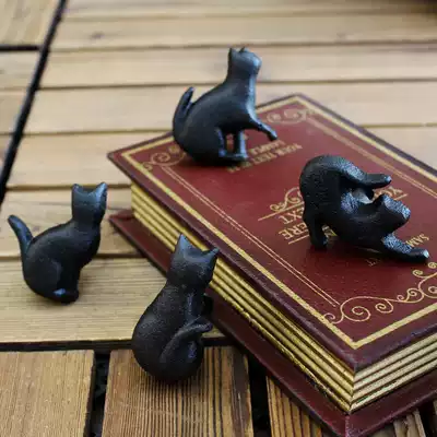 American creative personality wardrobe drawer cat handle retro metal black matte cast iron handle