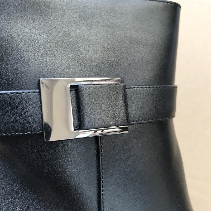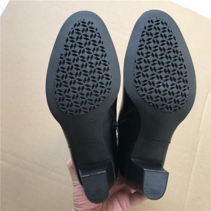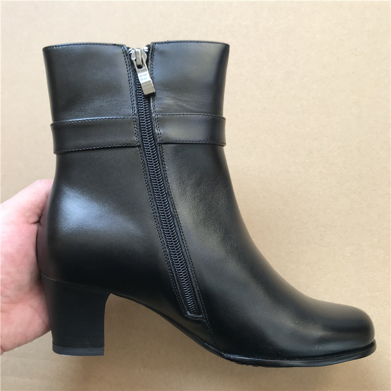 Black women's suede leather shoes winter mid-tube warm plus suede leather shoes side zipper women's winter shoes