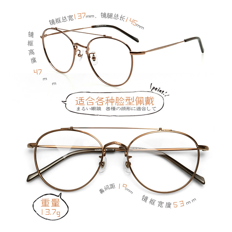 (Popular new product) Retro pilot double beam metal men and women can be equipped with anti-blue light myopia optical glasses frame