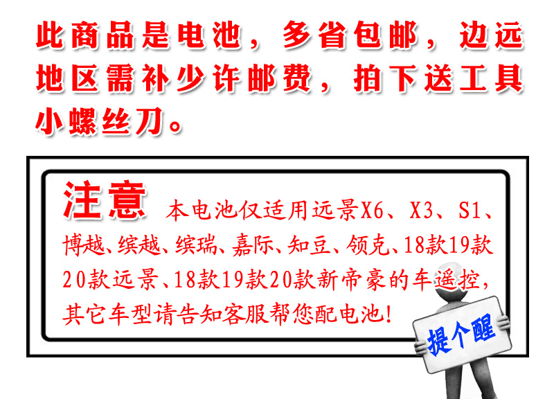 Apply the Geely X6 X6 X3 S1 S1 S1 SUV Boer the more and more the same, the more the Euronecker, the 18 the 18 models 19 the new Emmy exclusive original imported car key remote control button to the Panasonic Panasonic battery
