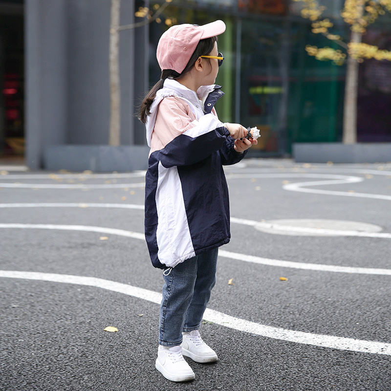 Pear small idle girl's winter style garnter with long version of parquet color Lianhood jacket Children's school jacket E84W1728