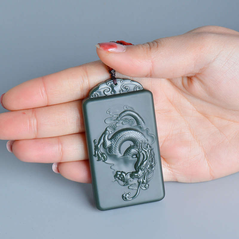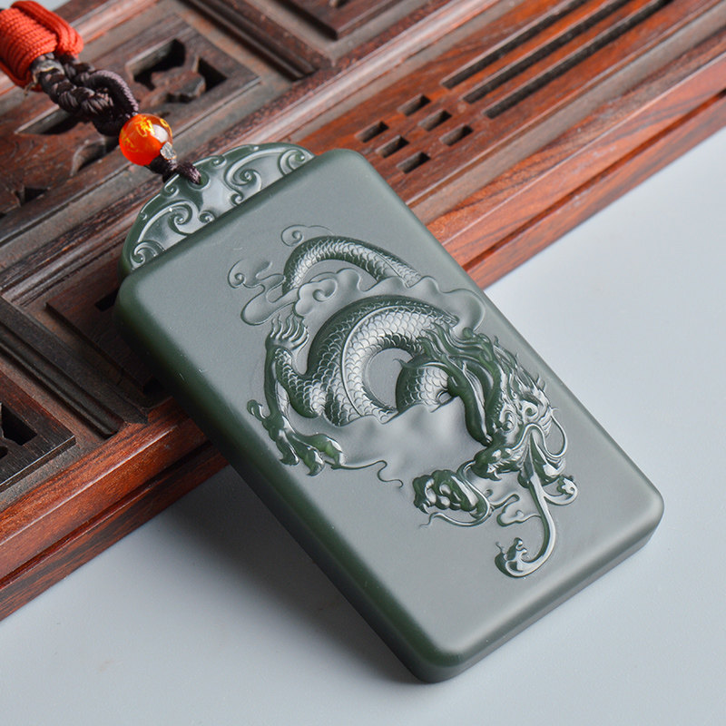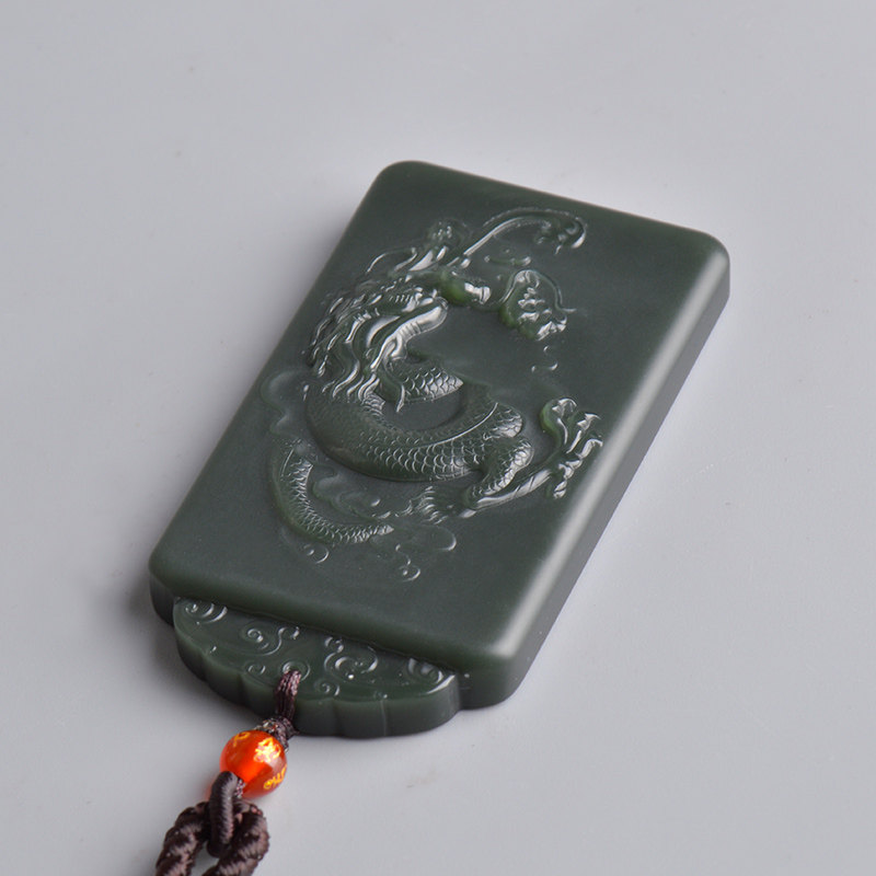 Phoenix Phoenix and Tian Yuqing jade fine material Xiao Long pendant men's tower cyan dragon card jade necklace large piece of jade