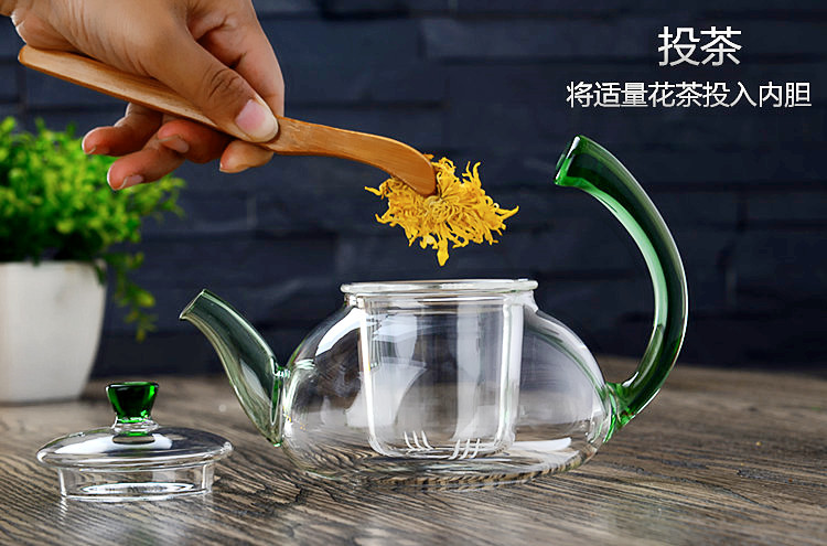 Thickened glass teapot with filter heat-resistant teapot full glass teapot cooking teapot Cui Ling pot flower teapot