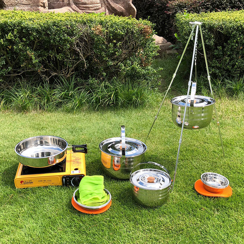 Stainless Steel Pot Pot Pot household induction cooker soup pot self-driving outdoor pot portable camping pot picnic pot