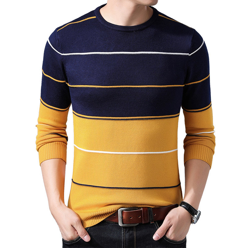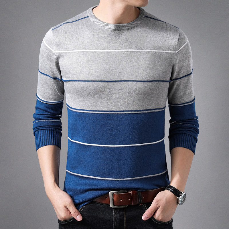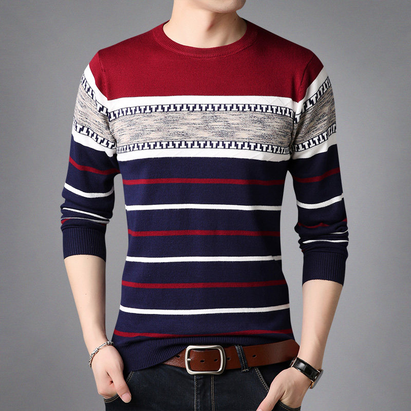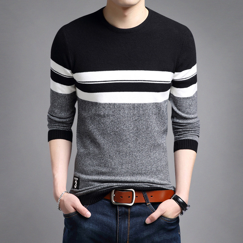 Spring and autumn new men's long-sleeved T-shirt thin section knitted sweater round neck large size bottoming shirt men's stretch T-shirt top