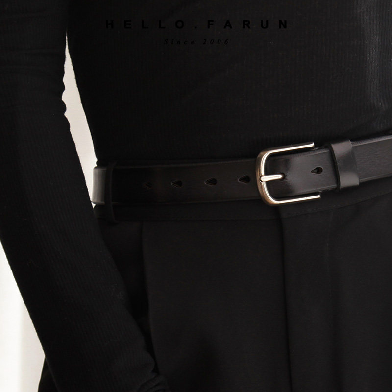 Fanu first layer cowhide female leather simple pin buckle student fashion belt glossy commuter pants belt Korean belt