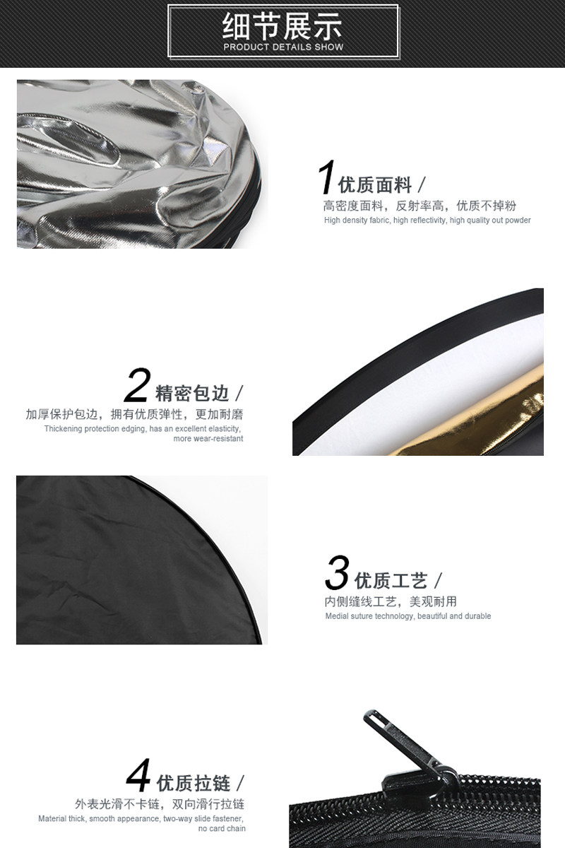(Send carrying bag) Gold and silver 30cm ordinary 2-in-1 reflector (send carrying bag) Silver white 30cm ordinary 2-in-1 reflector (send carrying bag) 60cm ordinary 2-in-1 reflector (send carrying bag) 75cm ordinary 2-in-1 reflector (special offer) (send carrying bag) 80cm ordinary 2-in-1 reflector (send carrying bag) 100*150cm ordinary 2-in-1 reflector (send carrying bag) 60cm ordinary 5-in-1 reflector (send carrying bag) 80cm ordinary 5-in-1 reflector (send carrying bag) 110CM ordinary 5-in-1 reflector (send carrying bag) 80cm portable 5-in-1 reflector (send carrying bag) 110cm portable 5-in-1 reflector (send carrying bag) 80*120cm three-in-1 portable elliptical reflector (send carrying bag) 100*150cm ordinary oval reflector (send carrying bag) 120*180 hand-held 5-in-1 reflector (send carrying bag) 150 *200cm handheld 5-in-1 reflector 2 meter reflector bracket 2.6 meter reflector bracket 2.8 meter reflector bracket