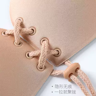 Drawstring strapless underwear women's invisible bra Post dress wedding dress with bride's small breasts gathered on the breast patch