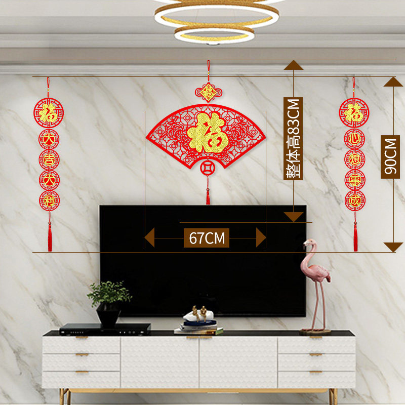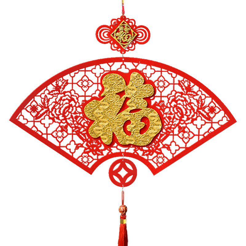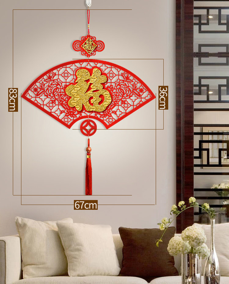 Chinese knot hanging decoration large fan-shaped blessing word creative New Year goods New Year housewarming festive living room decoration 2021 can be customized