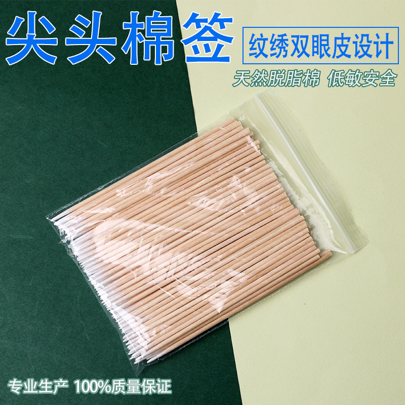 Double eyelid pointed design cotton swab round head small cotton swab single head makeup disinfection degreasing sanitary cotton swab thread tool