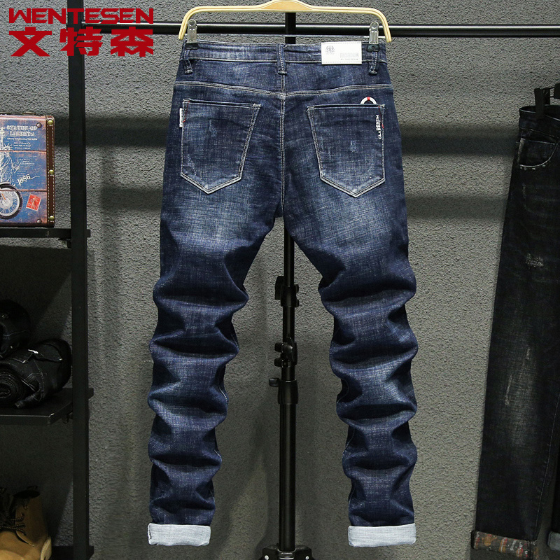 Spring and summer men's jeans men's slim new stretch Korean version casual scrape small straight tube trend brand trend pants men