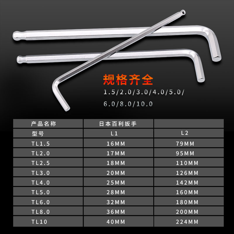 Baili inner hexagonal wrench single lengthened inner hexagonal screwdriver single L-shaped inner hexagonal metric wrench